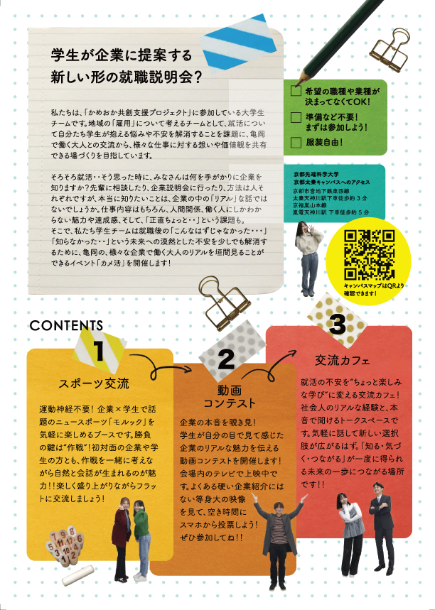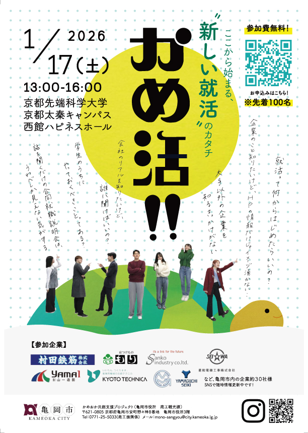 2026年1月17日(土)、京都先端科学大学京都太秦キャンパスの西館ハピネスホールで学生が考えた就活イベントを開催します。