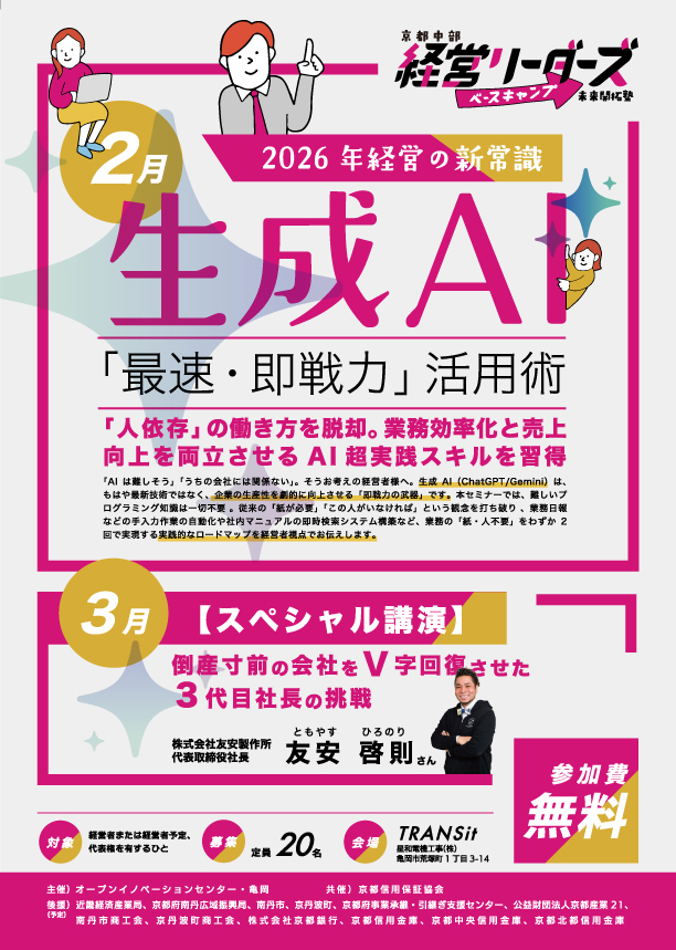 2月の2回の講座では生成AIについて学びます。労働人口が減少していく中、限られた人数の中で最大限の効果をえるために、生成AIの活用が経営の成否の大きなカギとなりえます。