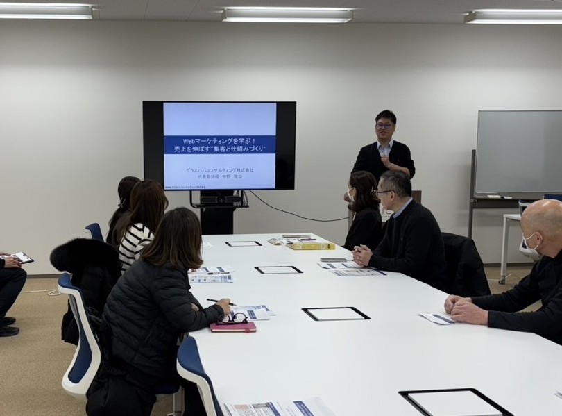 2026年2月16日(月)、当センターのコワーキングスペースにおいて、中小企業診断士である中野雅公氏を招き、ネットにおける自社サイトへの誘導、及び販売につなげるノウハウを学びました。