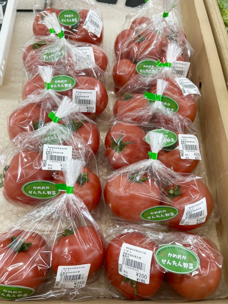 3月4日(水)からついにスマートアグリハウスで収穫した大玉トマトを当センターの近くにある株式会社京都佐伯の里様で販売を開始しました。