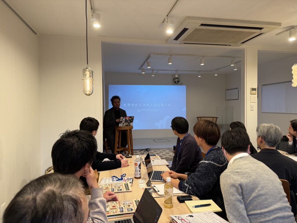 当日はデザイン経営の重要性、事業承継後の新たな事業戦略、先代との付き合い方、現在の複数ある事業のシナジー効果、MVV、インナーブランディングについてなど、生きた経営手法について様々な知識やノウハウについてお話いただきました。